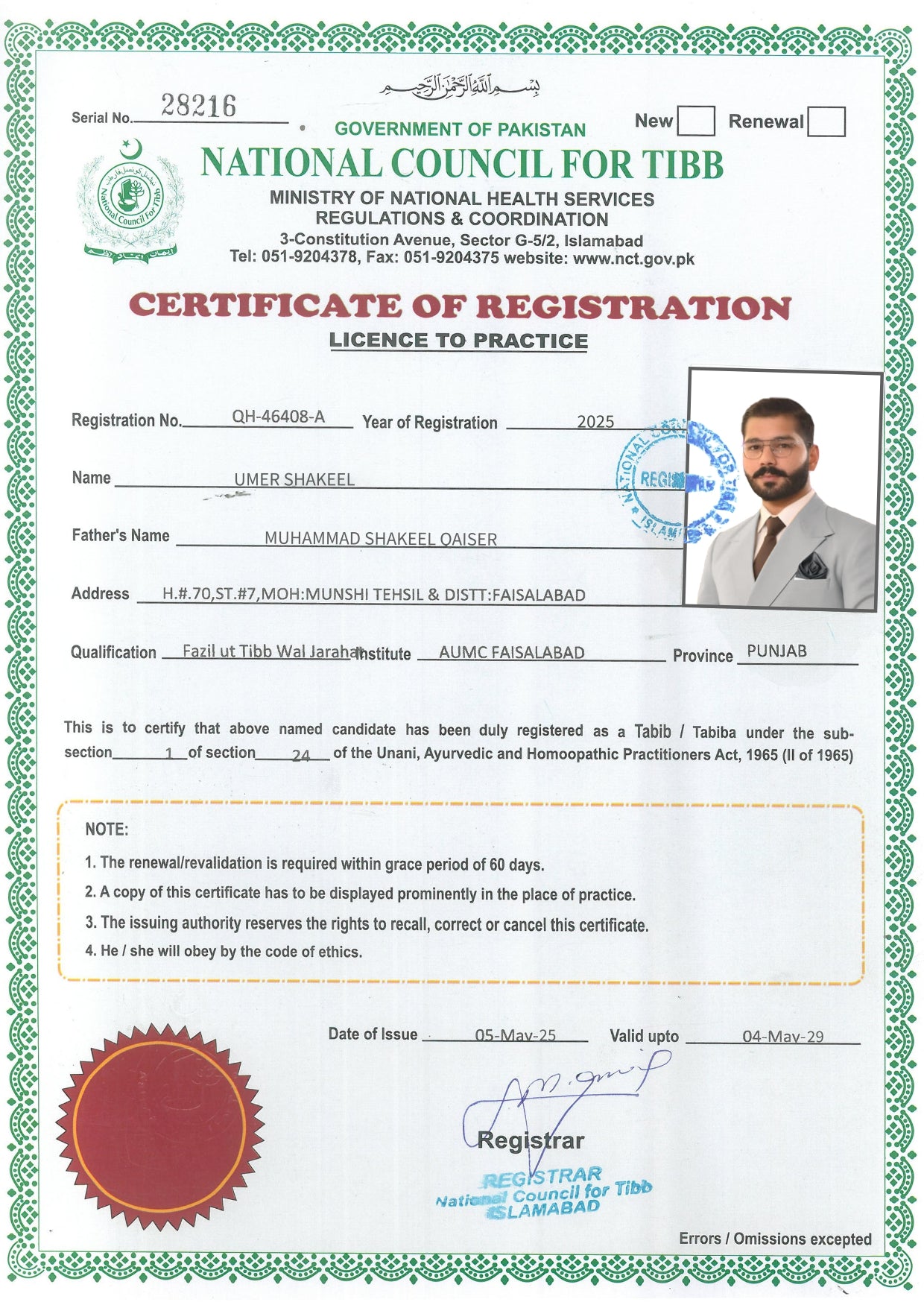 We make no exaggerated claims - only offer what time, tradition, and results have already proven. Our founder, Umer Shakeel, carries forward this legacy with sincerity, making natural and halal wellness solutions accessible to people across Pakistan. With over 70,000 satisfied patients, our work is a reflection of both ancestral knowledge and trust in Allah’s creation.